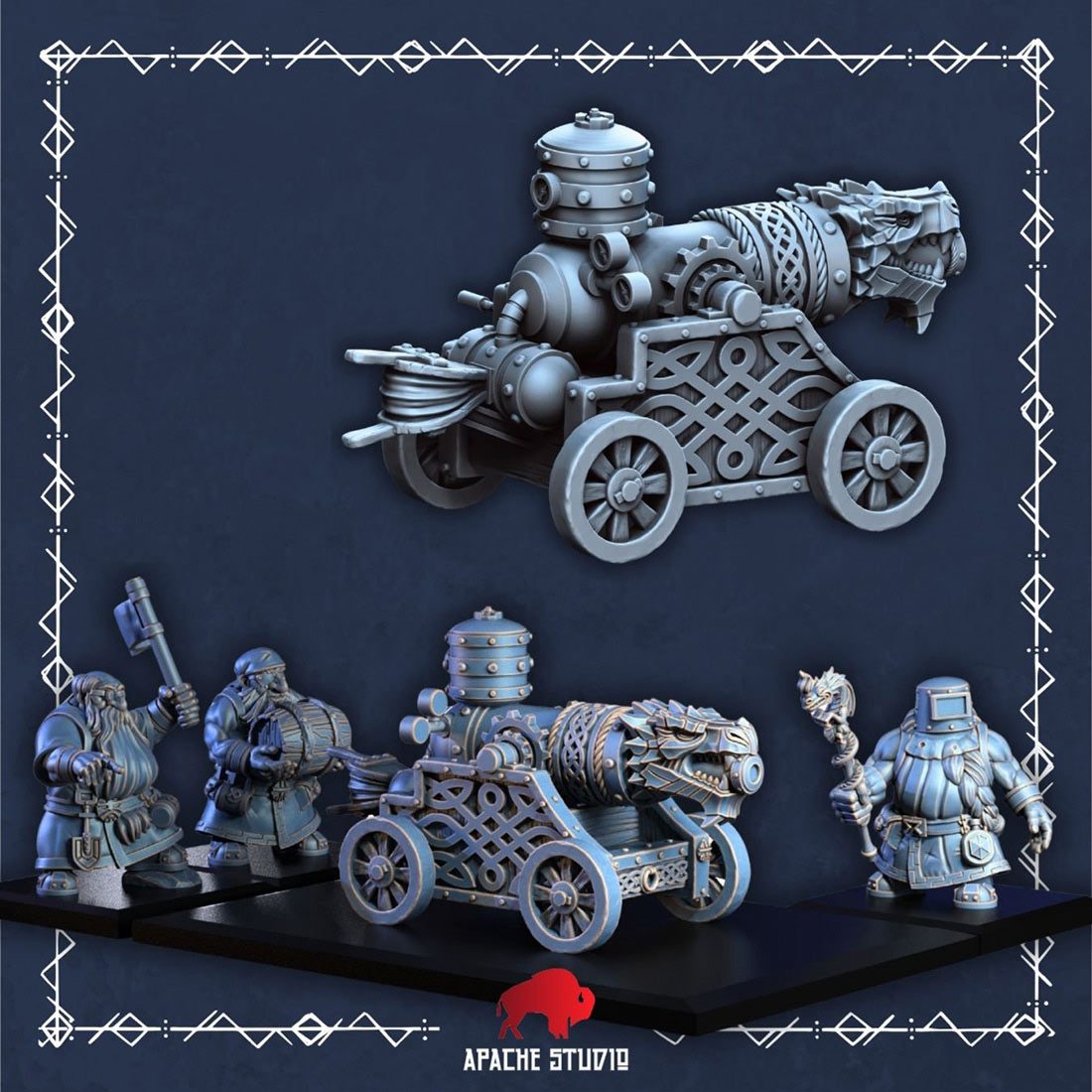 Figurines conçues par la marque Apache Studio et réalisées en impression 3D. Fournies non assemblées et non peintes.