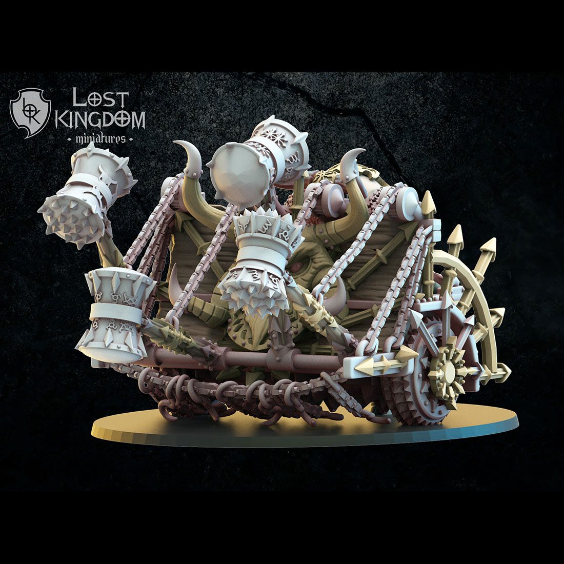 Contient les éléments nécessaires au montage d’une machine de guerre à roues, le Char à marteaux.
