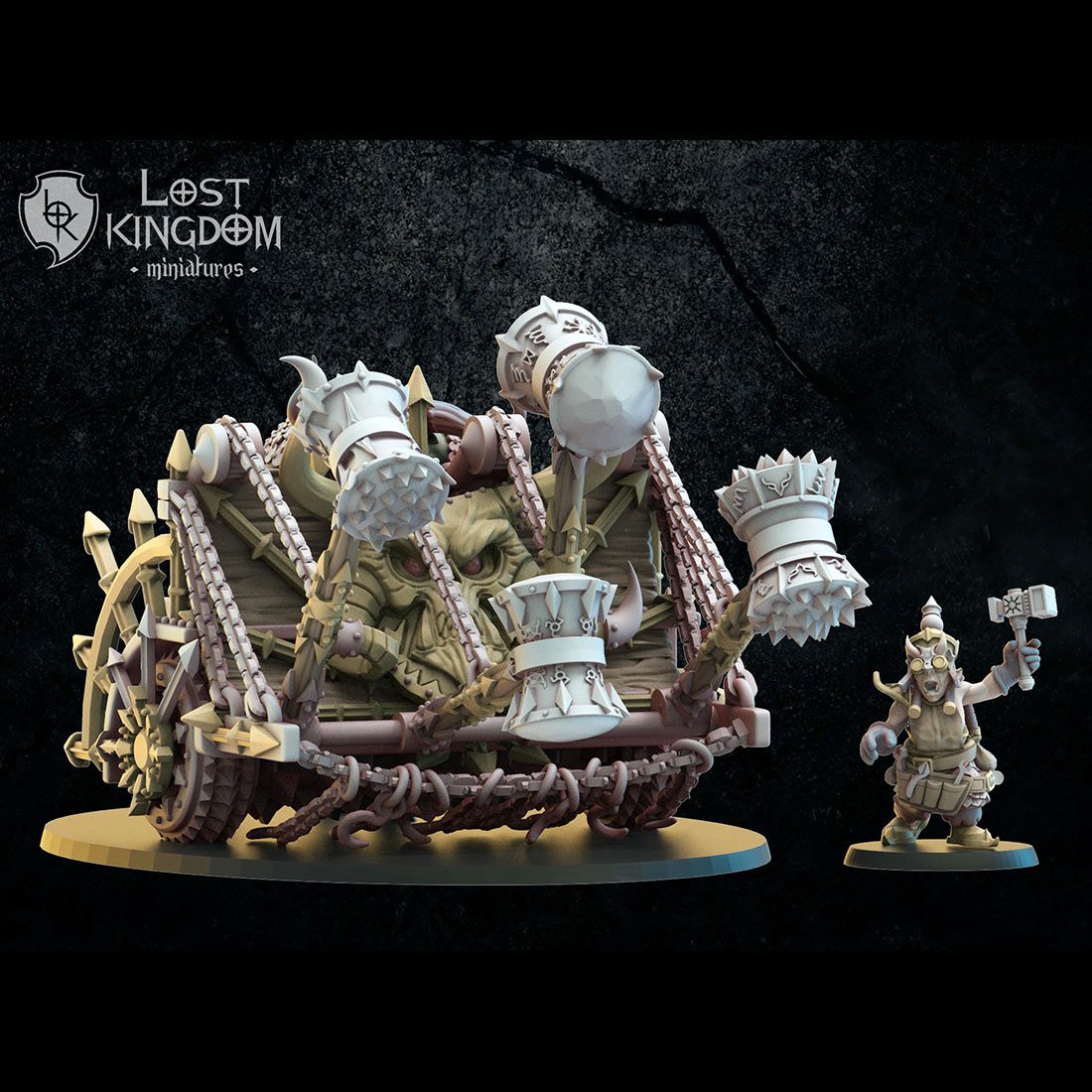 Les nains infernaux lancent leur char à marteaux droit vers l’ennemi, gare aux régiments compactes.