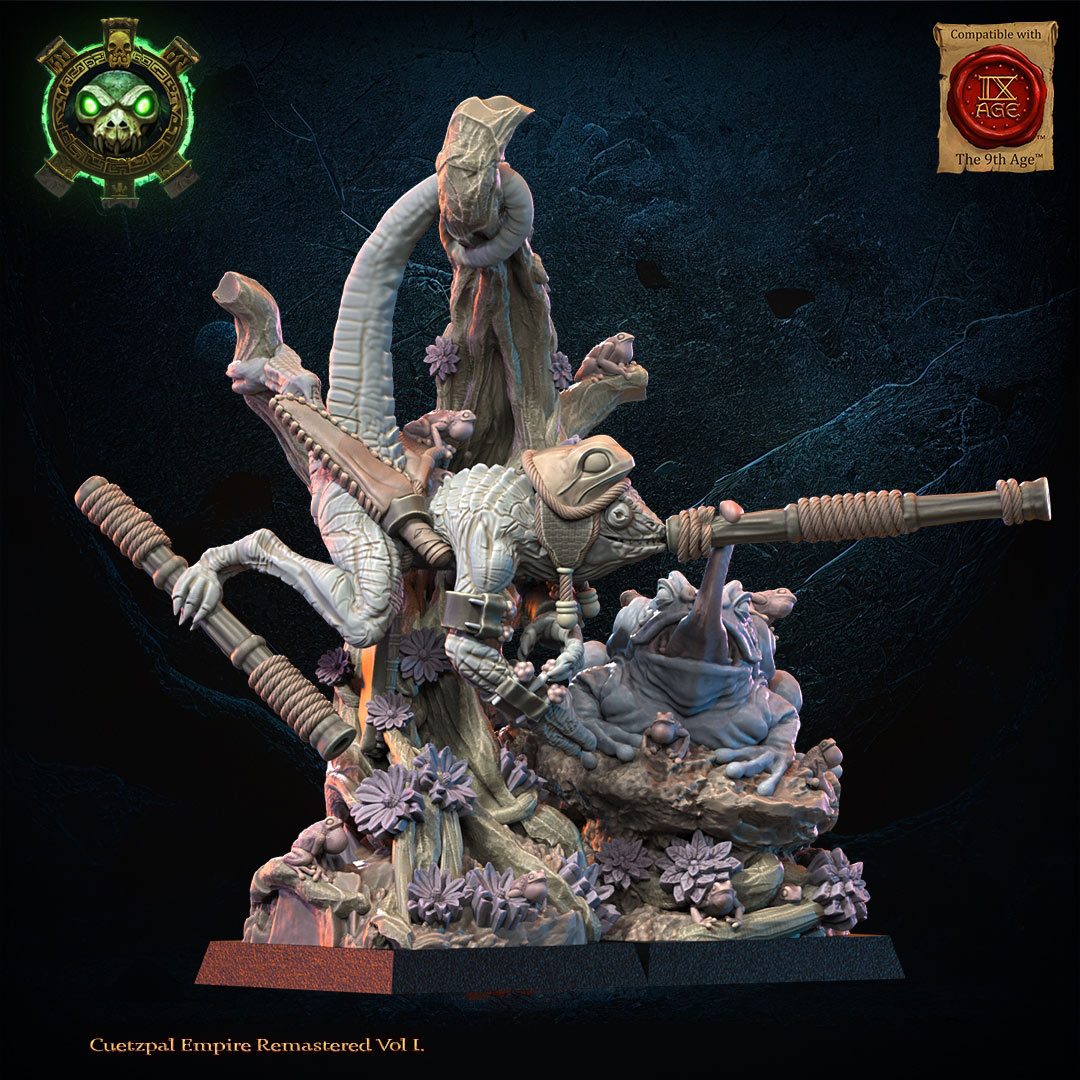 Figurines conçues par la marque Lost Kingdom miniatures et réalisées en impression 3D. Contient les éléments nécessaires au montage d’un héros caméléon armé d’une sarbacane et accompagné de son crapaud. Fournie non assemblée et non peinte.