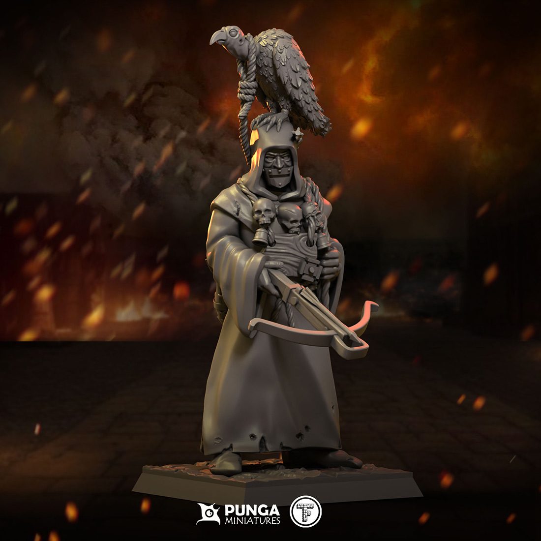 Figurine conçue par la marque Punga miniatures et imprimée en 3D. Fournie avec un socle rond de 32mm. Figurine non peinte.